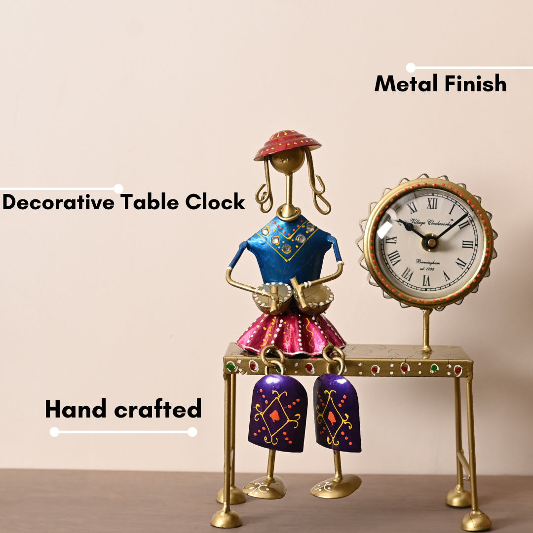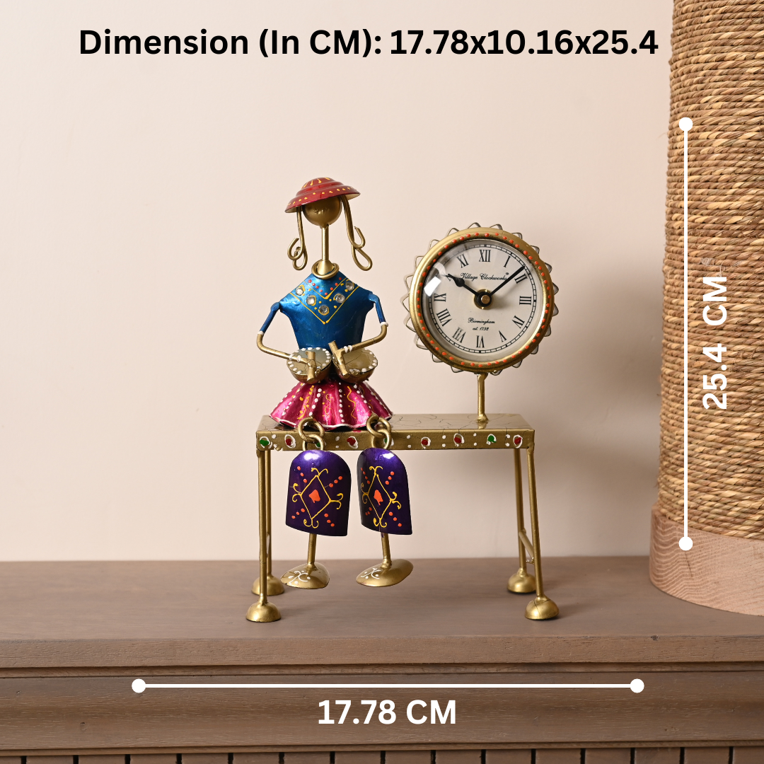 | Hand-crafted rust-free iron clock stand with beautifully Indian Village lady in traditional colourful dress make your showcase a classical look. It’s an impeccable set for home decoration and an ideal gift for your loved ones. There may be slight difference between the picture provided and the actual products as these are hand-crafted. |