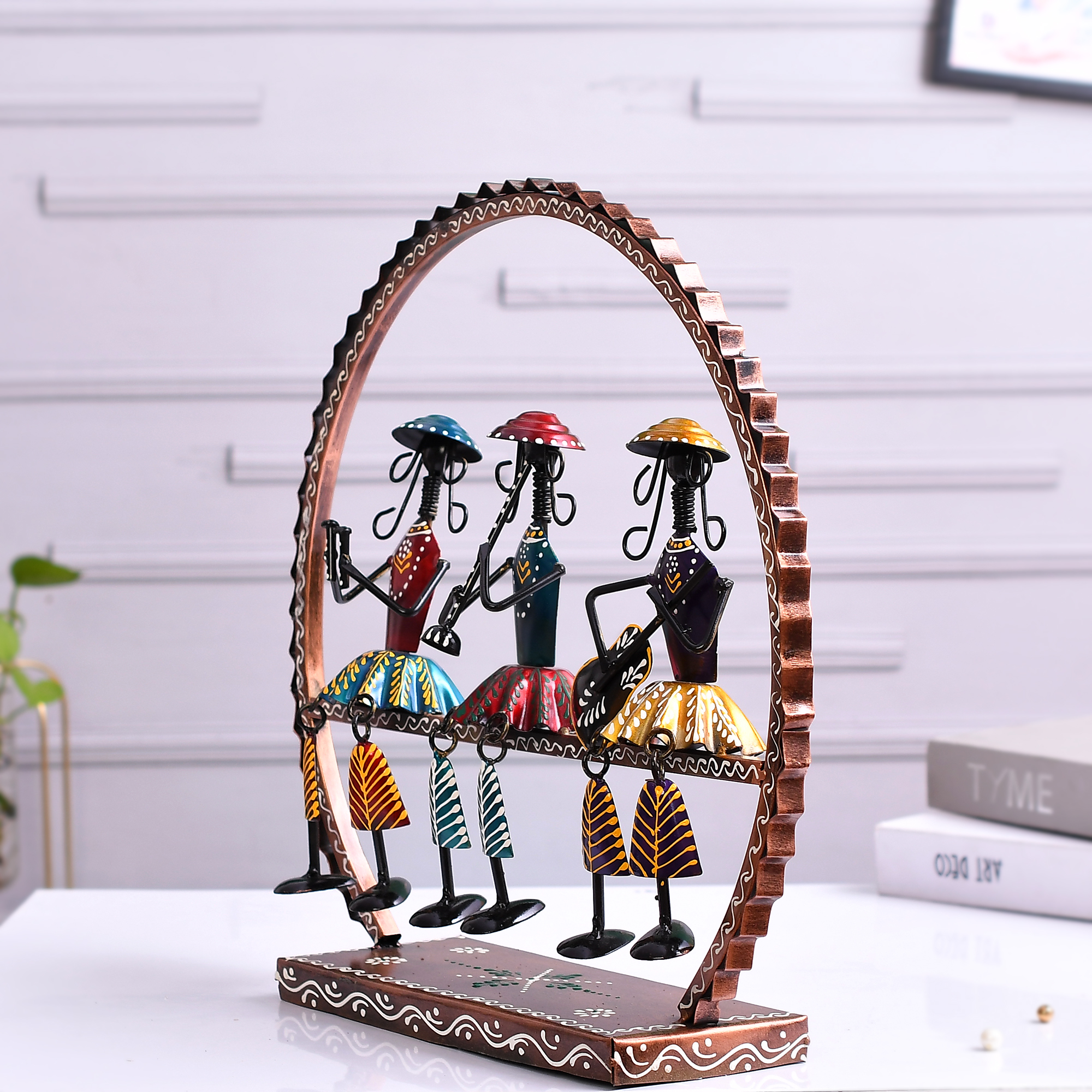 | Enhance the ambiance of your living room with this exquisite Antique colourful hand-crafted Sitting Lady Musician Set. Crafted with meticulous attention to detail, this showpiece set features Indian tradition village Musicians playing instruments, adding a touch of traditional charm to any space. Each musician is beautifully hand-painted with vibrant colours. There may be slight difference between the picture provided and the actual products as these are hand-crafted. |