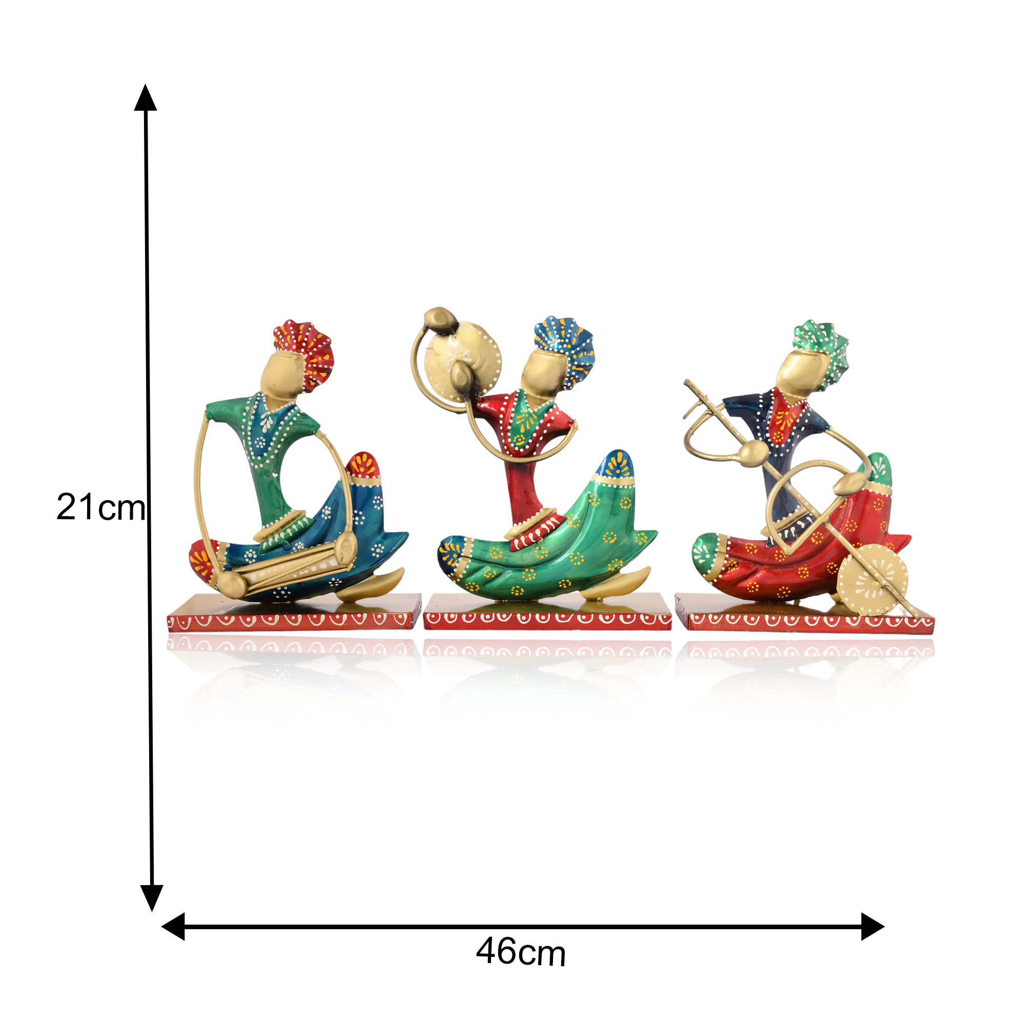 Enhance the ambiance of your living room with this exquisite Antique colourful hand-crafted Sitting Nagpuri Music team. Crafted with meticulous attention to detail, this showpiece set features Indian Musicians playing instruments, adding a touch of traditional charm to any space. Each musician is beautifully hand-painted with vibrant colours. There may be slight difference between the picture provided and the actual products as these are hand-crafted.